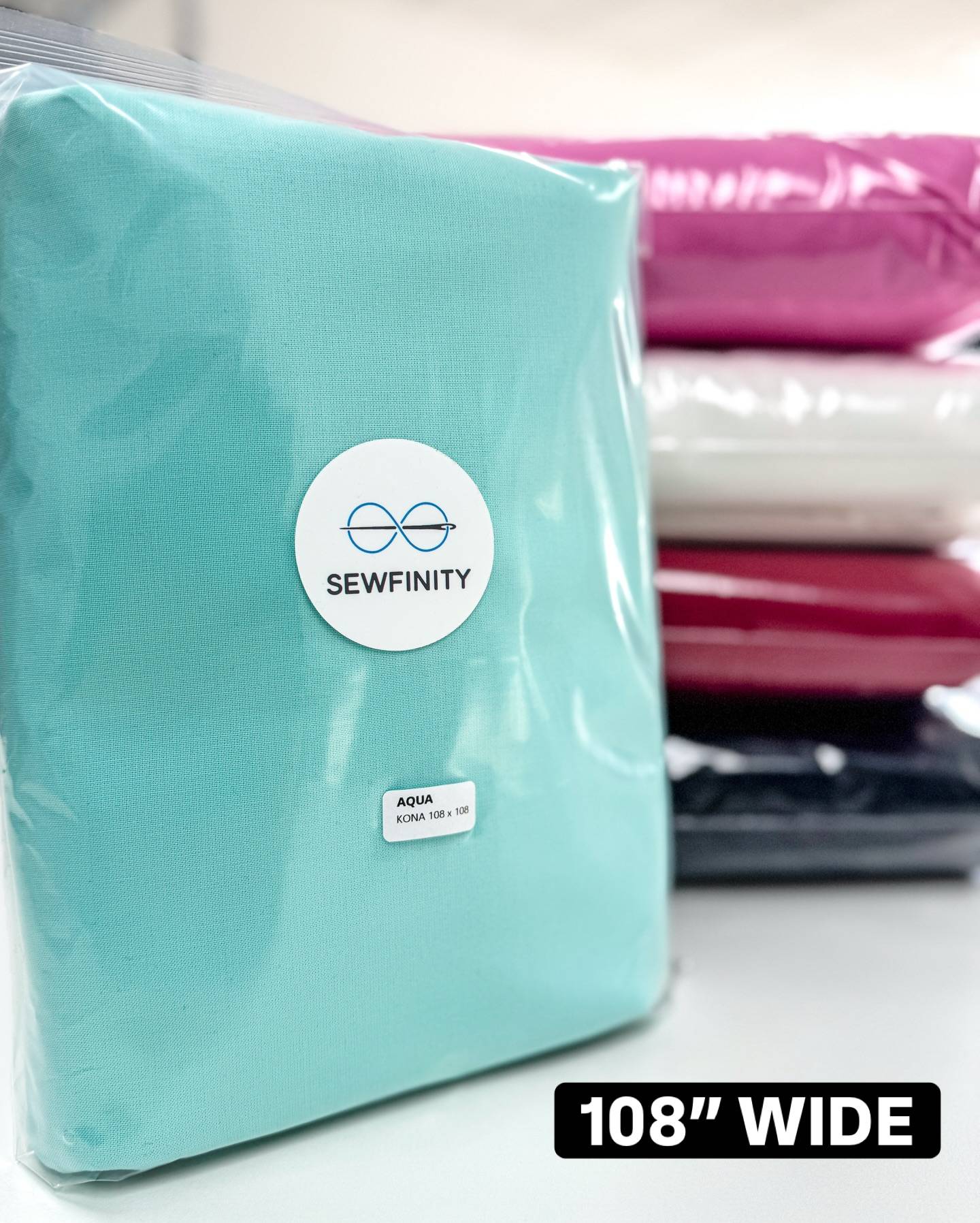 We added 5 more colors to our lineup of 3-yard packs of 108” wide 100% cotton Kona Wide: Aqua, Candy Pink, Snow, Rich Red, and Black. So handy for finishing up a quilt!