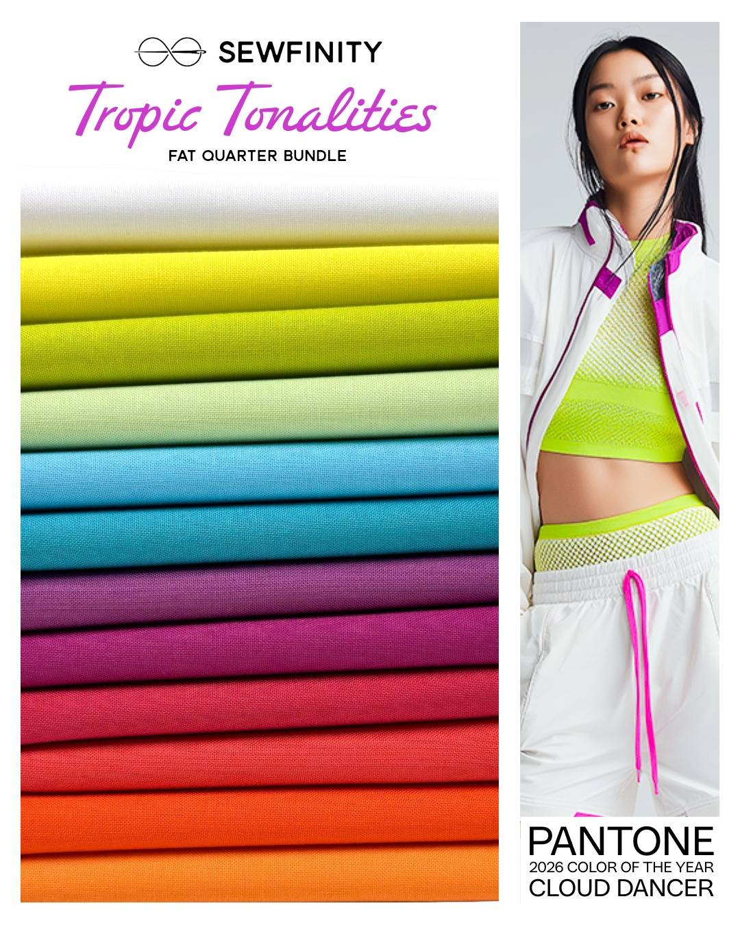 Pantone's 2026 Color of the Year is Cloud Dancer, and we've curated 8 fabric bundles for you. Here's an all-light bundle, but there are also 7 inspiring palettes where Cloud Dancer allows other colors to shine.